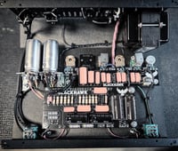 The RAGNARÖK uses wall voltage into a robust transformer which supplies both 6.3v AC to the filaments and over 200v DC to the plates of two 12AX7 preamp tubes.